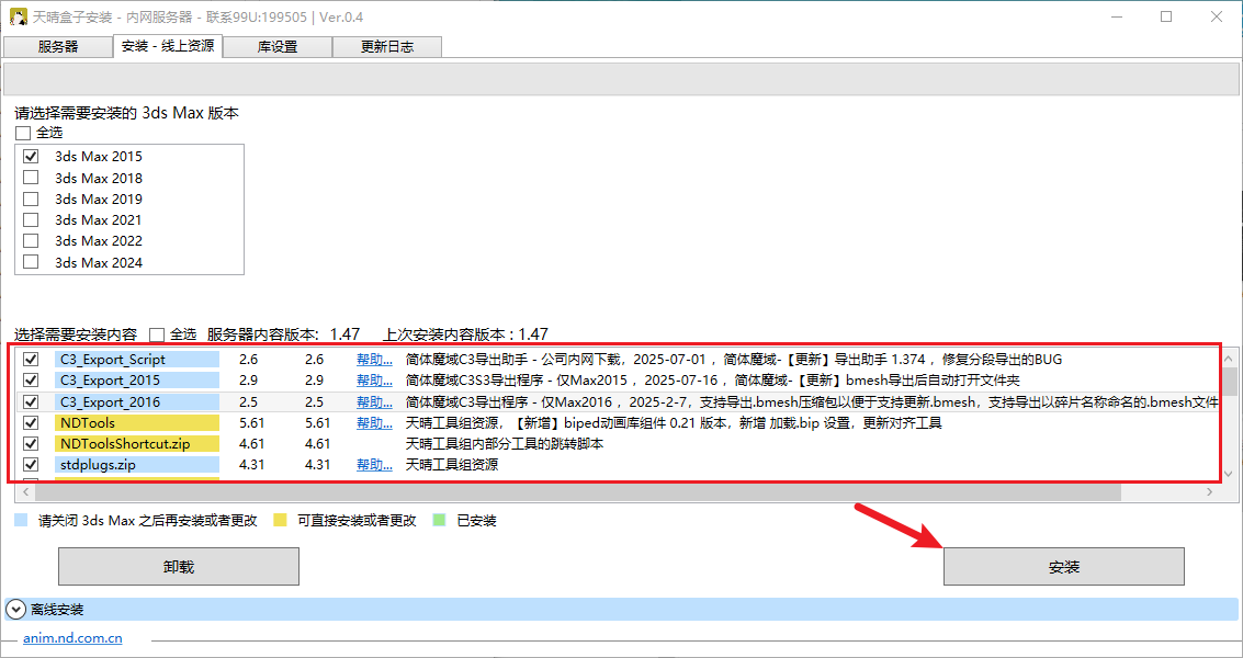 然后打开 C:\ProgramData\Autodesk\ApplicationPlugins\NDToolsBox\NDDownload.exe 安装器,使用离线安装即可。