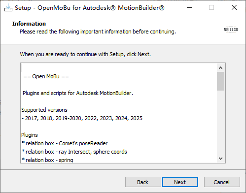 默认安装路径 C:\\Program Files (x86)\\OpenMoBu 该安装不会自动设置 Motionbuilder 的路径,需要自行设置路径。