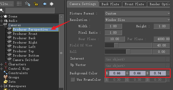 设置好透视图背景颜色后,就使用 脚本 将颜色同步给其他视口相机。
