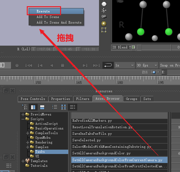 如下图,找到 脚本拖拽到 透视视口中,Execute 执行即可。